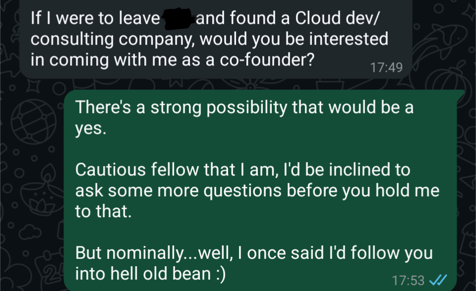 I am reminded of different commute home from last year where the seed that was Zure UK would be planted. I was returning from the Integrate 2024 conference in London when my old boss, friend, mentor and fireteam member Rik messaged me the following.